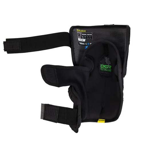Bauer’s CURV Composite protection wraps around the forearm for added safeguarding, extending from the AMP hinged bicep that provides further protection and mobility.